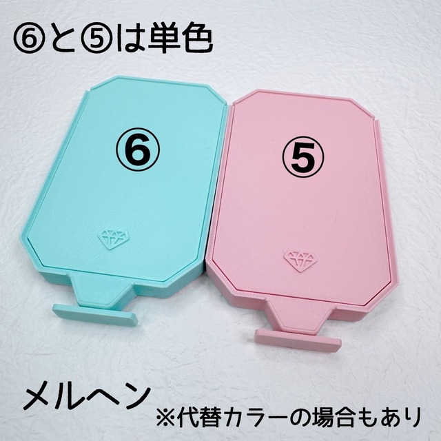 先月の受注で多めに作ってしまった分なので少量です。 選択肢にない太めと4マス仕切りはありません Sシャッタートレイはグラデーションのため両サイドから見えるカラーと中央になるカラーが4パターンあります。緑、オレンジ、ピンク、紫。 本体はシルクですが、プレート部分はグラデーション・マット(くすみカラー)を使用しています。 ペンやプレイサーをご使用の方から、ペンを押し付けた際のたわみが氣になるとのお声がありましたので、プレートの厚みを少し厚くし、溝幅は中間幅をなくし、細め、太め(通常)を作り、両サイドの傾斜幅も変更しました。 今後、今まで通常幅としていたものの名称を太めに変更させていただきます。 あと微妙な変更ですがシャッター開けやすくなるように薄くしました。 ノズル位置の変更希望のお声もありますが手が回りませんでした。 シャッタートレイの高さは18mm(仕切り15mm、ノーマル12mm) トレイ棚には入りますがシャッターの持ち手部分で引っかかります。 商品画像はお使いの端末や環境によって、色味や素材感が実物と多少違って見える場合がごさいます。 業務用ではなく卓上サイズの家庭用3Dプリンターで制作していますので、 市販品のような強度や精密さに欠ける部分もあります。 制作過程で多少の傷やコゲがある場合もございます。 市販品のような完璧を求められる方には向かない商品です。 熱や衝撃等の強い力を加えると変形や破損の恐れがあります。 ---------------トレイサイズ--------------- トレイ溝の本数 通常:SS12本、S12本、M14本 細め:SS14本、S14本、M17本 仕切りなし SSサイズ 6cm×6cm×1.2cm+ノズル約1cm Sサイズ 9cm×6cm×1.2cm+ノズル約1cm Mサイズ 12cm×7cm×1.2cm+ノズル約1cm 仕切あり Sサイズ 9cm×6cm×1.5cm+ノズル約1cm Mサイズ 12cm×7cm×1.5cm+ノズル約1cm