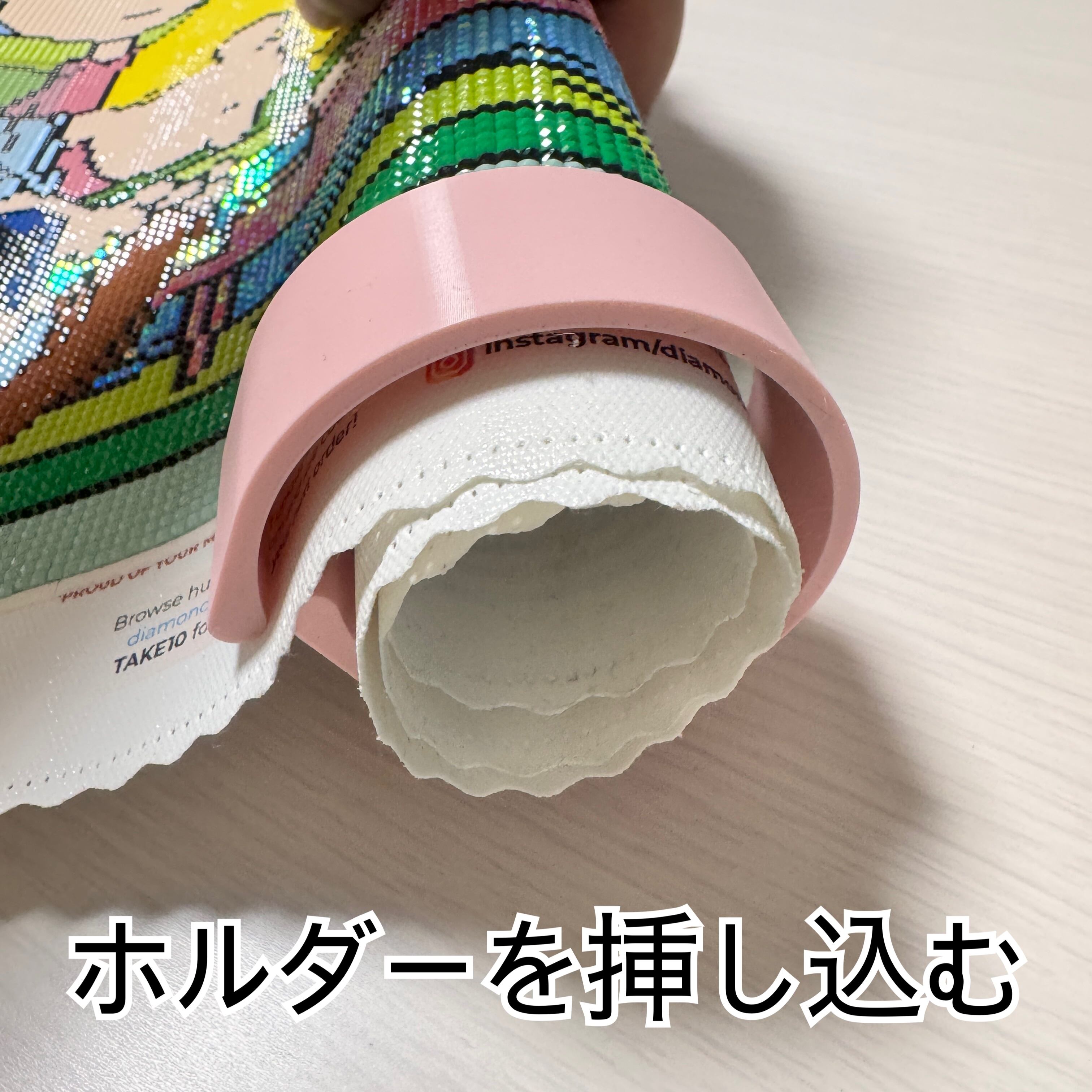 ビーズを貼った面を外側にしてホルダーの中で丸めて使用します。